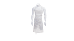 Delantal en color natural, con bolsillo frontal y cintas de ajuste a juego. De corte por debajo de la rodilla.